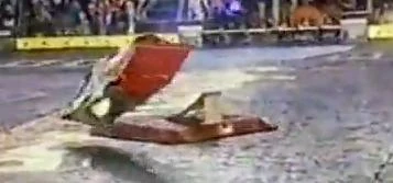 Next up for Bad Attitude was Derek Young and Complete Control. In the match, Bad Attitude went straight at Complete Control and drove into Complete Control's grappler. Bad Attitude took several runs at Complete Control, hitting the bot and quickly retreating. Complete Control briefly had Bad Attitude, but lifted the top arm to readjust. Bad Attitude escaped in the process. Bad Attitude then backed up into Complete Control's clamp and Complete Control grabbed Bad Attitude. Complete Control took Bad Attitude to the killsaws and Bad Attitude's wedge got hit by the killsaws. Complete Control then took Bad Attitude to the pulverizer and the top arm of Complete Control was bent sideways. This happened when Complete Control successfully clamped Bad Attitude the first time as it shifted and forced the arm to bend. Complete Control took Bad Attitude away from the pulverizer and flipped it over. Bad Attitude drove itself over the killsaws and went straight at Complete Control. Even with the arm bent, Complete Control grabbed Bad Attitude and lifted it. Complete Control took Bad Attitude to the killsaws again and Bad Attitude took more damage to its wedge. Bad Attitude went straight at Complete Control and was flipped again by Complete Control's lifting arm. Complete Control almost grabbed Bad Attitude again, but Bad Attitude slipped away. Bad Attitude took another hit from the killsaws and Complete Control followed Bad Attitude around the BattleBox. Complete Control clamped Bad Attitude one last time and took it to the killsaws yet again. Bad Attitude's side got hit by the killsaws and Complete Control flipped Bad Attitude one final time before the time ran out. Complete Control won on a 39-6 judges' decision and Bad Attitude was eliminated from the tournament again.