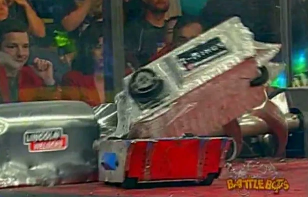 Bad Attitude charged straight at Spaz and flipped it. Bad Attitude lined up for another shot, but got stuck on the killsaws. Spaz started to spin and hit Bad Attitude with its spiked arm. Bad Attitude continued to line up, aim, and slam into Spaz, tossing it around the BattleBox. Bad Attitude once again hit the killsaws and then got wedged underneath Spaz and pushed it hard into the wall, but Bad Attitude got itself stuck under the spikestrip. Spaz tried to free Bad Attitude, but it was being counted out and Spaz won by KO at 2:37.