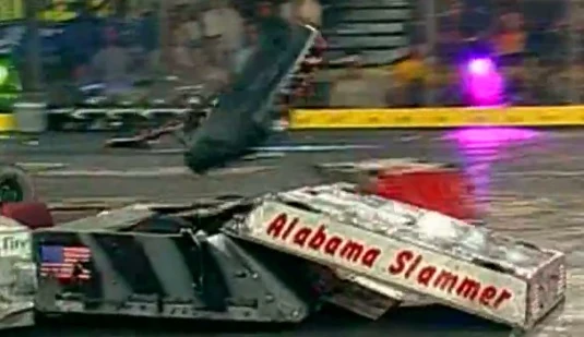 Bad Attitude's first match was against M.I.A. At the beginning, Bad Attitude charged straight at M.I.A. but missed. Bad Attitude lined up for another hit and slammed M.I.A. into the wall, pinning it against the spikestrip. Bad Attitude hit M.I.A. hard and knocked M.I.A. loose from the spikestrip. As M.I.A. tried to line up a hit on Bad Attitude, Bad Attitude got caught on the killsaws. Bad Attitude charged again and hit M.I.A. from the side. M.I.A. seemed to stop moving at this point due to radio interference and Bad Attitude slammed M.I.A. repeatedly into the arena wall. Bad Attitude then pushed M.I.A. over the killsaws and then on the arena floor spinner. Bad Attitude got in one last hit on M.I.A. before it was counted out. Bad Attitude won by KO at 1:46 and advanced to the Round of 16.