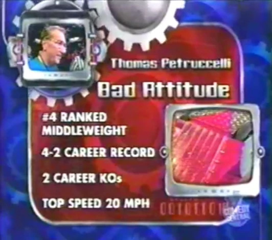 Tom Petruccelli also built Turtle for the 1997 US Robot Wars competition and entered it in BattleBots. After Turtle's first fight in Season 4.0, however, Turtle's driver had to leave and Petruccelli took Turtle. Due to already having a middleweight in the competition, Bad Attitude, Tom could not compete with Turtle but managed to get Jim Smentowski of Team Nightmare to do so instead.