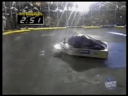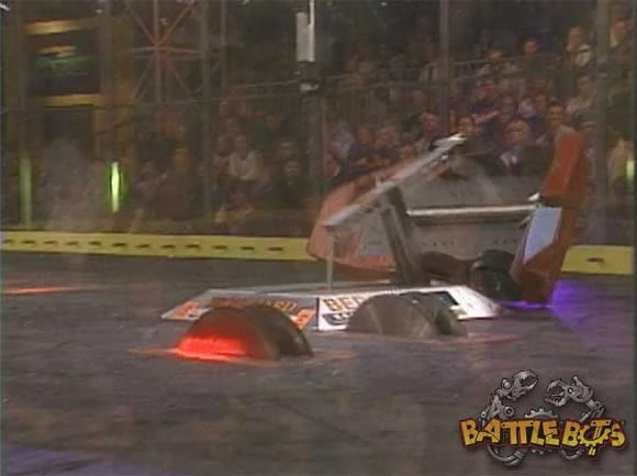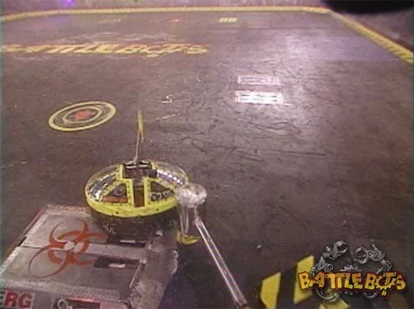 BioHazard vs. Kill-O-Amp After receiving a bye in round one, BioHazard went up against Kill-O-Amp. The fight began with Kill-O-Amp charging straight forward at BioHazard, but Kill-O-Amp would harmlessly bounce off the front skirts of BioHazard. Minutes would go by with Kill-O-Amp repeatedly failing to gain any kind of advantage. BioHazard won by knockout and advanced to the next round. |