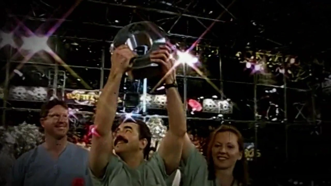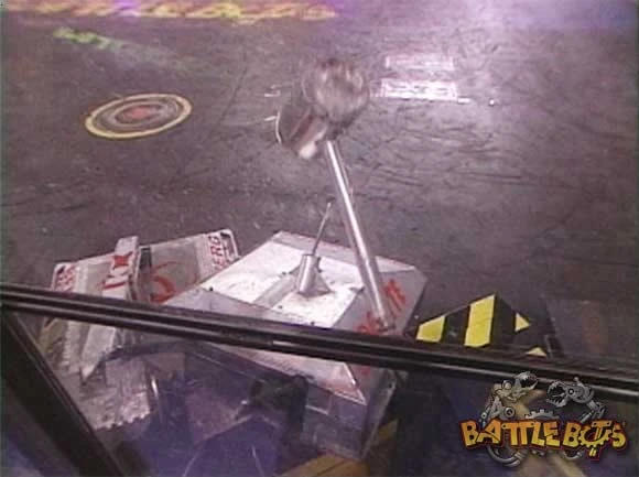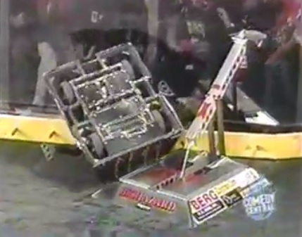 Having won all but one of its fights during the 1999 events, Carlo Bertocchini upgraded BioHazard again for BattleBots on Comedy Central. Its iconic lifting arm was powered by twin linear actuators run by 12V motors being operated at 24V instead, allowing for greater power output. As such, BioHazard was able to lift 220lb heavyweights quickly and efficiently and Carlo Bertocchini quoted each of the modified actuators as having a force of 1,400lbs.[4] In Season 1.0, BioHazard advanced through its first two fights before coming unstuck in a quarter-final loss to Voltarc. It would, however, win the heavyweight rumble at the end of the competition.