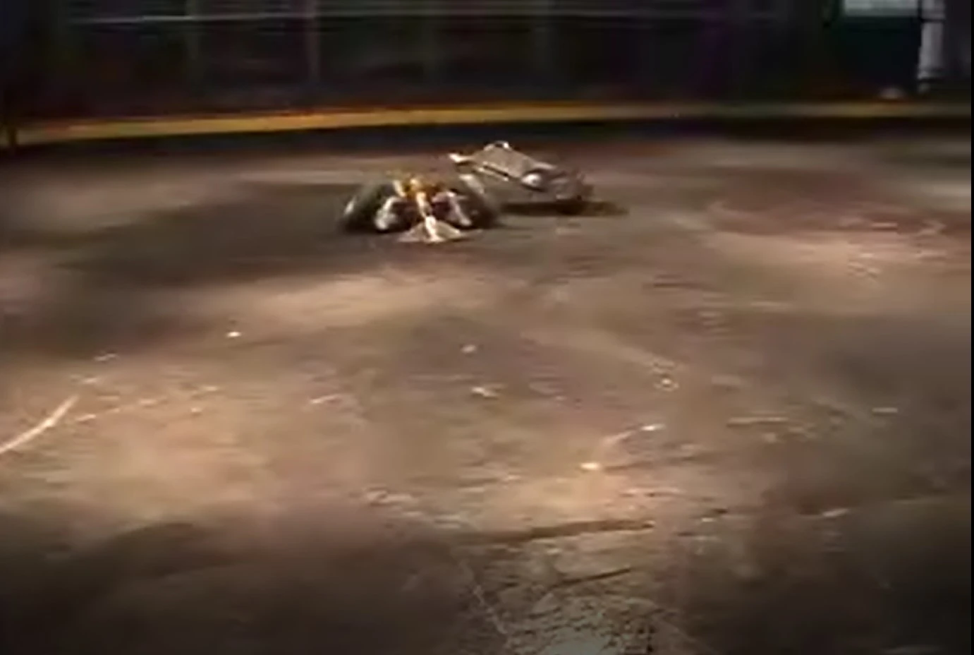 Here, it faced Witch Doctor. When the match began, the two bots advanced towards each other before Witch Doctor got caught on a floor seam, which appeared to have affected its driving. Blue Flame took advantage of this and hit Witch Doctor on that side and damaging the wheels on that side. After Witch Doctor hit another floor seam, Blue Flame dished out one more gigantic hit to the wedge that sent Witch Doctor gyro-dancing out of control and onto its back near the wall, where its drum drove the robot the entire width of the arena before coming to a stop on the opposite wall. With Witch Doctor upside down on the wall with no way of self-righting, it tapped out, giving Blue Flame a win by TKO and advancing it to the quarter-finals, where it faced Category 5.