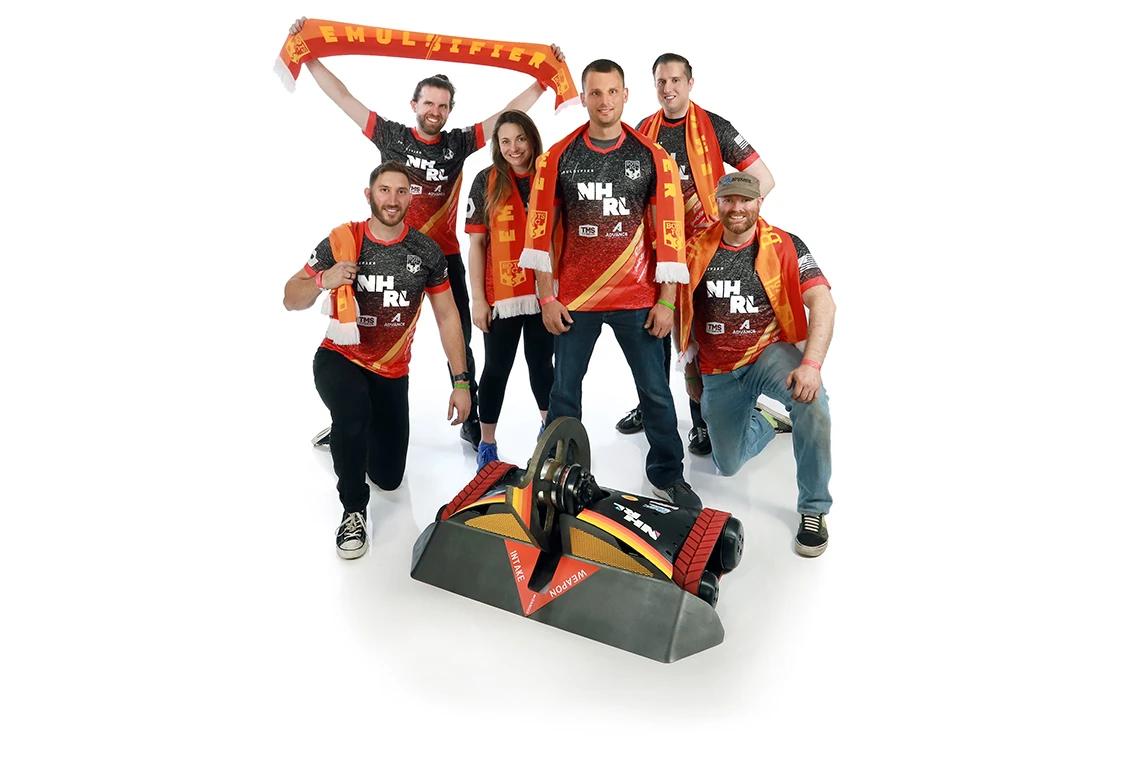 In August 2025, the 30lb Emulsifier was formally recognized in The Combat Robot Hall of Fame. Emulsifier's NHRL successes - including 30 match victories and five championship wins - and reputation as a 'knockout specialist' enabled it to receive a Honorable Mention that year.[1] The team also built 60lb walking shell spinner Drift for the 30lb division. Emulsifier would once again qualify for the NHRL World Championship in December 2025, but lost in the quarter-finals to eventual division champion KaZaA Lite.