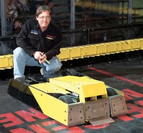 It was a four-wheel drive, box-shaped robot with a flipping arm for weaponry. Bounty Hunter's weapon was powered by CO2, which was legal in BattleBots events at the time. The flipper was not only capable of lifting robots its size, but also served as a way of righting the robot if it got flipped over. It performed decently in competition, winning two battles overall.