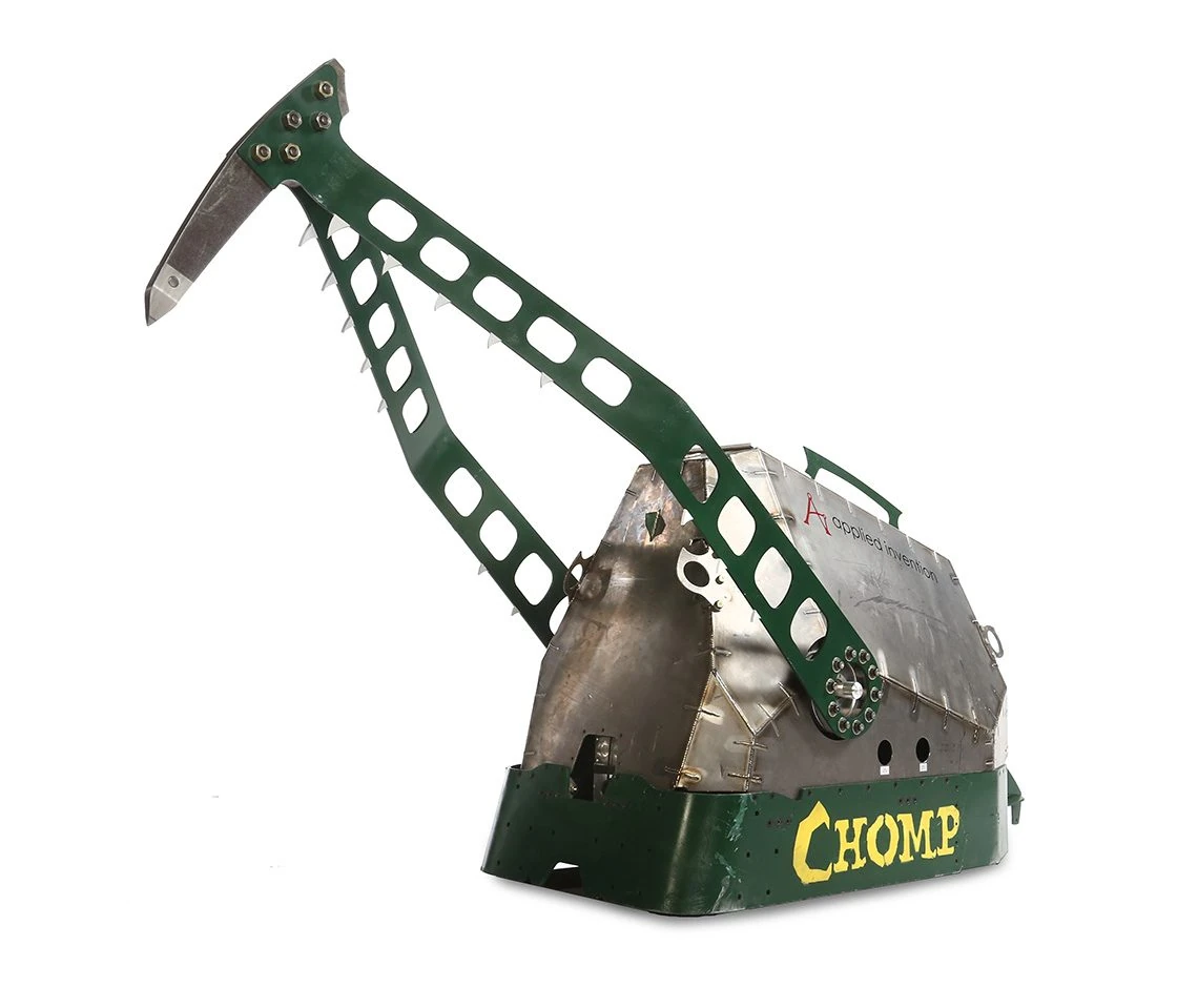 After a season away, Chomp was totally redesigned ahead of World Championship V, becoming the first 500lb walkerbot since the 2015 revival of BattleBots. Although it won its debut fight against Gamma 9, Chomp lost its following two battles and was ultimately not selected to enter the Top 32.