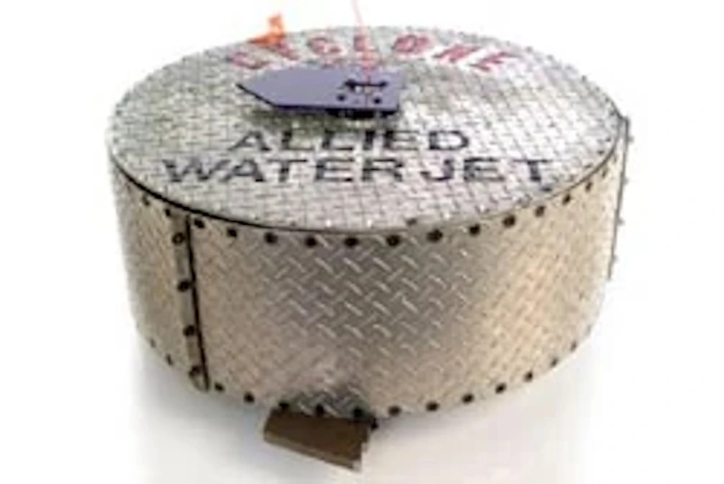 It was a relatively tall, disk-shaped robot armored in checkerplate metal bolted to the frame. Cyclone was a shell spinner design, meaning its armor doubled up as its offensive weaponry with the help of two cutting teeth attached to its outer shell. Cyclone also featured a purple, arrow-shaped directional indicator protruding from its top, and its name, as well as main sponsor Allied Water Jet, adorned Cyclone's top armor. It did not perform well in competition, losing its first match against OJ and not returning for future events.