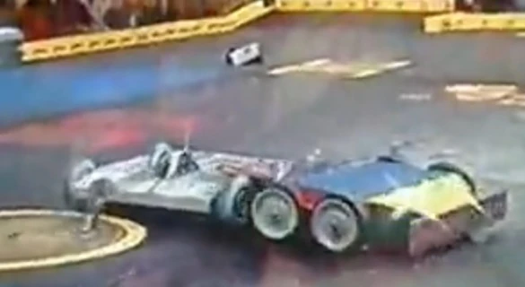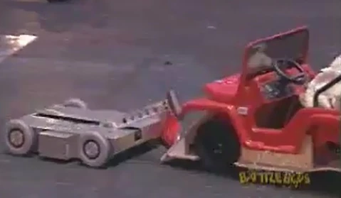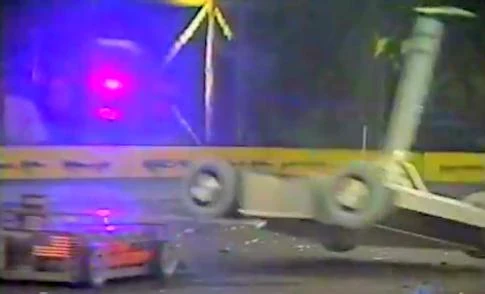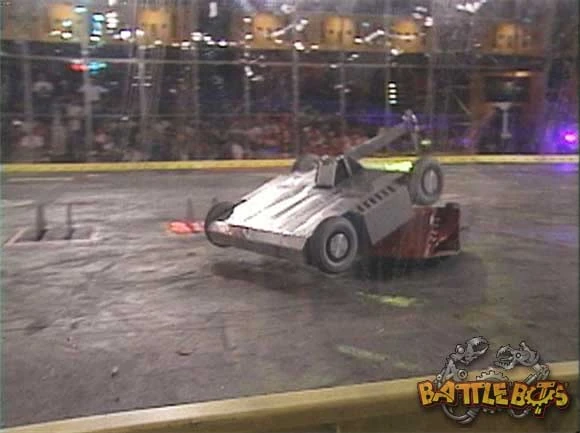 Deadblow vs. Junior Deadblow was now in the loser's bracket, where it faced Junior. The lifting arm of Junior was ineffective against Deadblow as Deadblow was semi-invertible. Deadblow managed to dent Junior a couple of times. Both robots were still moving in the end and Deadblow won by crowd vote. |