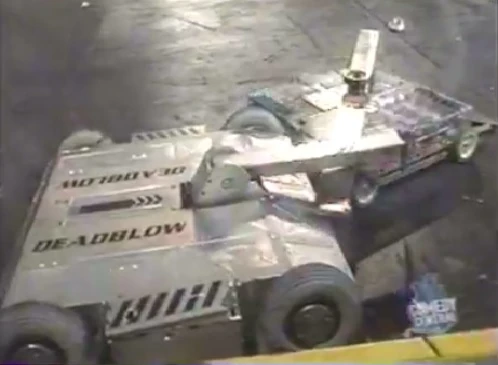 It was a box-shaped, four-wheel drive robot armed with a fast-acting pneumatic spiked hammer initially machined from steel, and later titanium,[1] fitted with an optional lifter attachment in later seasons. In its debut competition, Deadblow was initially defeated in the loser's bracket, but redeemed itself by winning the Megabot Rumble at the same event.