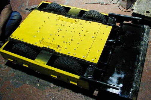 Electric Lunch was originally going to have a lifting arm, but it broke in testing and the motor was unable to be replaced in time for Season 3.0, so it became a simple pushing robot.