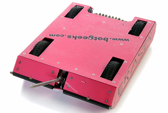 Eraser was a middleweight robot built by the Pencil Neck Geeks which fought during Seasons 3.0 and 4.0 of Comedy Central BattleBots.