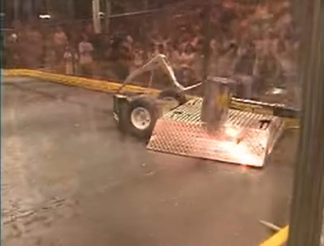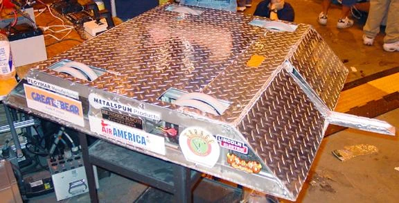 It was a silver, four-wheeled robot with a front-mounted lifter. Evil Eagle was able to run both ways up, and was armored in aluminum checker plate.