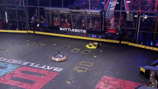 Free Shipping retreated as the 100lb hammer continued to land shots on Gigabyte's vulnerable underside, before Camden Wallraff stopped its weapon. The crowd began chanting Gary Gin's name, which was promptly followed by a count-out against Gigabyte. This ended the shell spinner's run in BattleBots: Champions II, falling one win short of the Golden Bolt tournament for a second successive year.