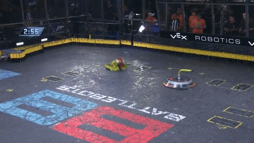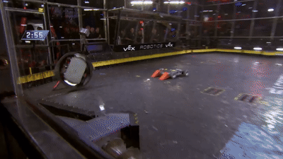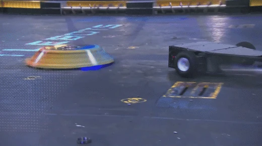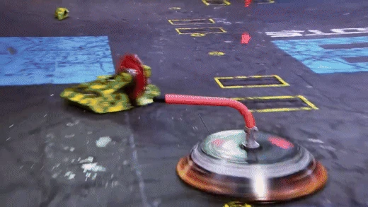 The last battle for Gigabyte against DUCK!, who it recently fought with in the Last Chance Rumble. When the match began, Gigabyte began strong as it delivered strong hits on DUCK!. However, DUCK! remained resilient and attempted to tank more hits from the dangerous shell spinner. Eventually, DUCK! lost the use of its left front wheel but was still able to show sufficient mobility. During its barrage of attacks, Gigabyte ended up hitting the casing for the screws, ricocheting away and damaging its drive system. Gigabyte was no longer able to move, giving DUCK! the surprise win by KO.