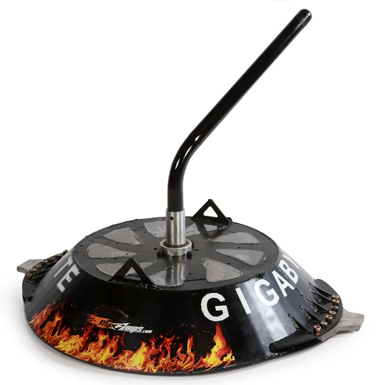 In April 2023, the team confirmed Gigabyte would be attending Proving Ground in July that year, looking to take on hopefuls ahead of World Championship VIII.[3] The team increased Gigabyte's 170mph tip speed, with Derek Tran confirming at BattleBots: Destruct-A-Thon that it could now reach 188mph and could make better use of its drive power thanks to the inclusion of magnets. In its two fights, Gigabyte defeated DOOM and JackPot. Since then, the team have brought Gigabyte out to Las Vegas to practice driving, but has not since fought another opponent.