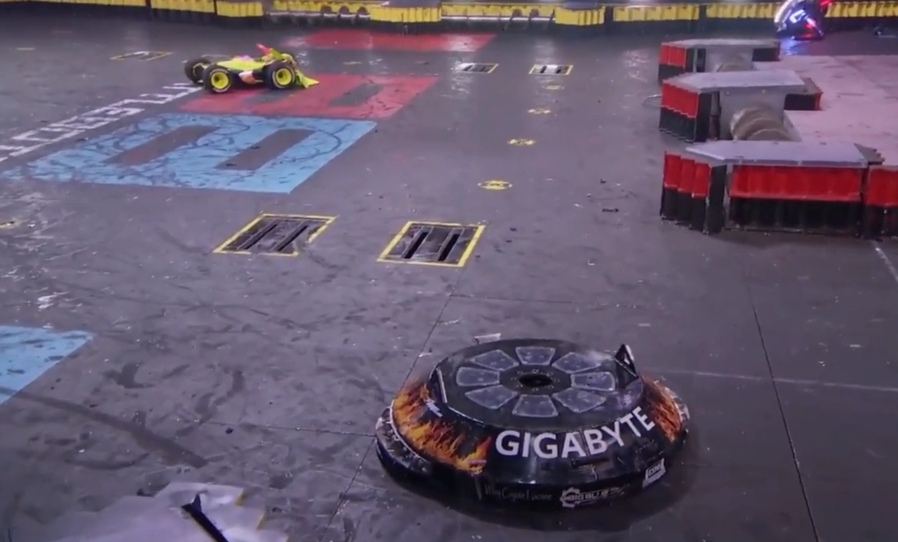 In addition to the main competition, Gigabyte also participated in one of the six Bounty Hunters brackets where it had the potential to fight the bot it was scheduled to face in a Play-in match last season, Son of Whyachi. Its first opponent was newcomer GRABOT.