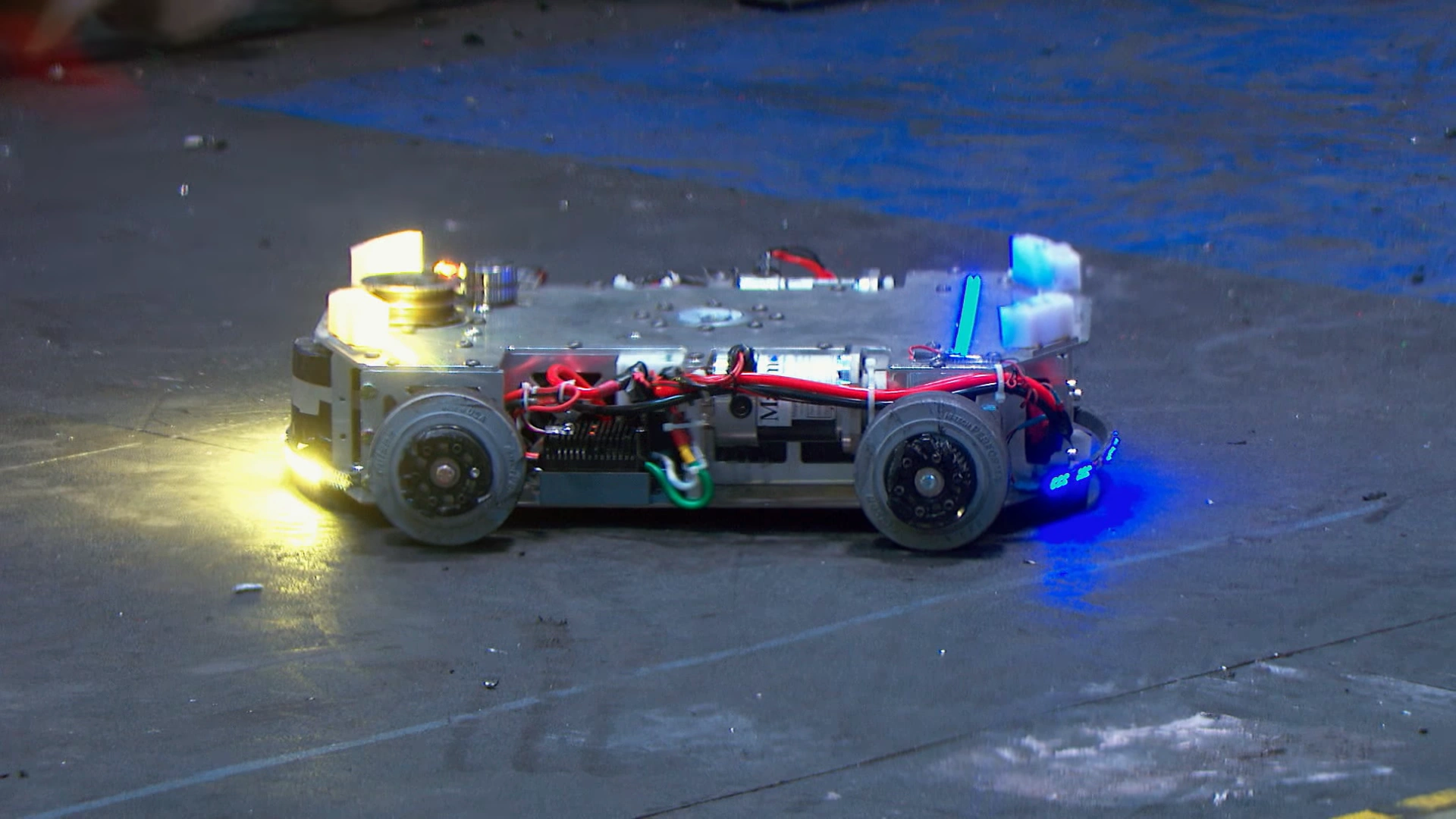 In a March 2023 Team Whyachi livestream, the Ewert family revealed the fight had to be paused momentarily as Gigabyte was thrown into an area of the BattleBox which yanked out an extension cord, leaving wiring strewn across the arena floor.