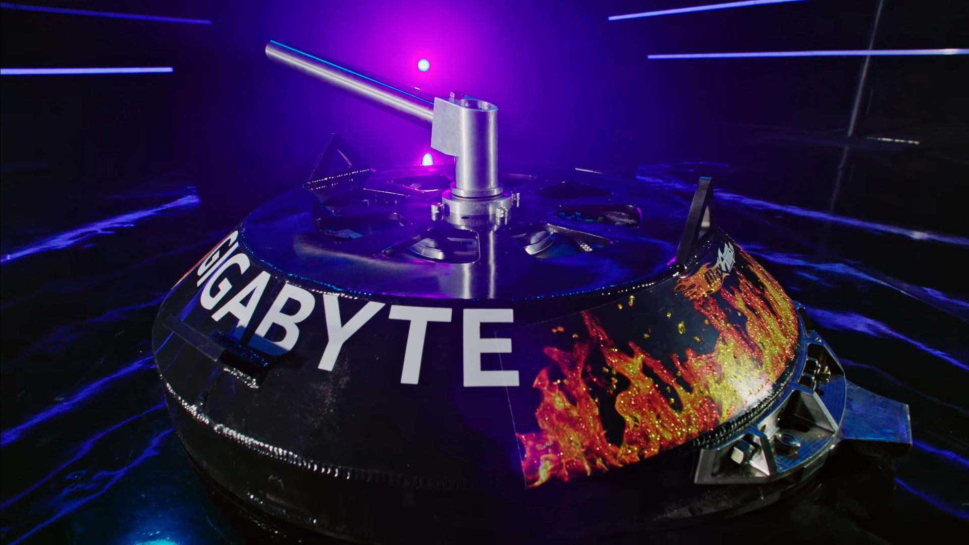 "This fighter’s got bite like the Great White from Jaws. When there’s blood in the water, he’s the most likely cause. Other teams hit him with all that they’ve got, but it’s never enough. You’re going to need a bigger bot. It’s GIGABYTE!"