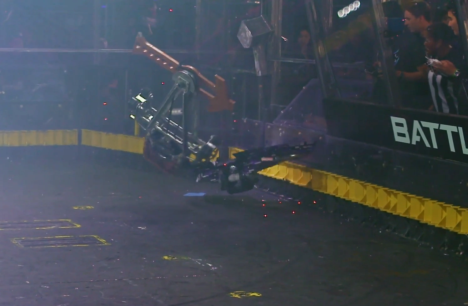 Kenny Florian: "Oh my goodness, ROTATOR's guts are all over the BattleBox... and there's smoke! Are you kidding me?!"