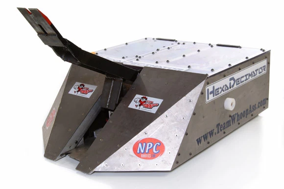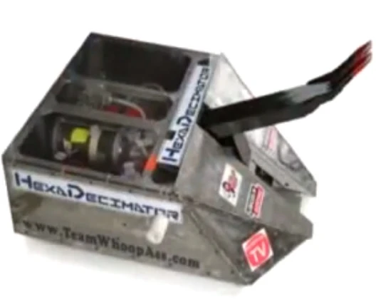 It is a boxy, wedge-shaped robot which was armored in titanium. During its Comedy Central BattleBots run, HexaDecimator sported a powerful hydraulic flipping arm which could also be used to clamp and control opponents. HexaDecimator did well in BattleBots, reaching the Semi-Finals in Season 3.0, the Quarter-Finals in Season 4.0 and 5.0, and winning the Heavyweight Royal Rumble in its debut year.
