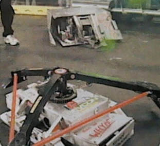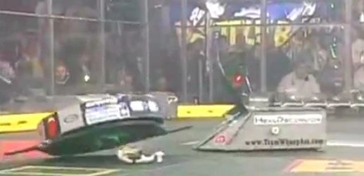 HexaDecimator vs. That Good R&D HexaDecimator's first ever match was against That Good R&D. In the beginning of the match, HexaDecimator was having trouble getting its flipping arm under That Good R&D. Shortly after, HexaDecimator finally got underneath That Good R&D and held it on top with the flipping arm, then driving it against the arena wall. At some point, HexaDecimator's flipping arm jammed That Good R&D's drive train and disabled the motor controller. This immobilized That Good R&D and it was now being counted out. HexaDecimator won by KO and moved on. |