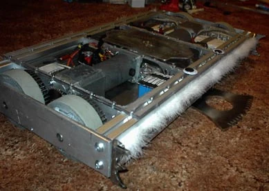 This was driven by a custom dual EV Warrior gearbox. Hoarf's armor was also extremely modular with adjustable wedgelet modules, and aluminum extrusion armor allowing for almost any armor plating to be bolted on the front via a t-slot. Despite all this It didn't perform well in competition, losing its first match against Chopper.