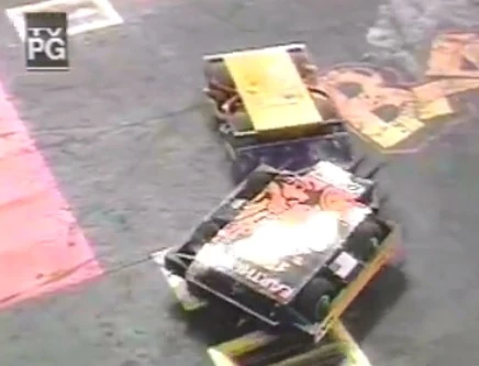 Janus vs. Ogre Janus pushes Ogre under the pulverizer. Ogre and Janus collide. This was mostly a pushing match and at one point, Janus pushed Ogre under the pulverizer. After this, the time ran out and Ogre won on a close 24-21 judges' decision. This meant that Janus was eliminated from the tournament. Because it lost in the round of 64, Janus couldn't participate the Superheavyweight Consolation Rumble at the end of the tournament. |