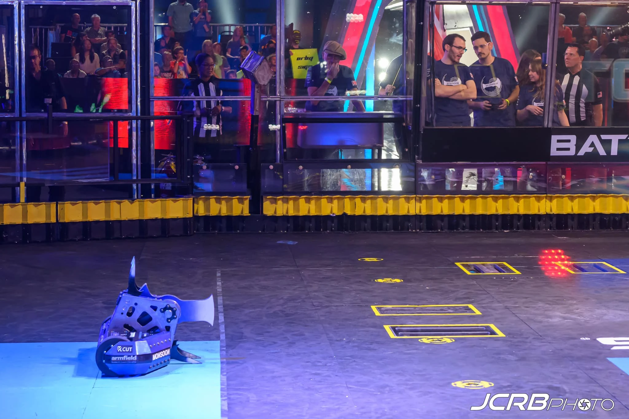 Like fellow referees, her role within the show consists of ensuring a competing team are abiding by the rules, counting down immobile robots, calling a pause in the fight if unsticks are necessary between bots, and calling the end of the fight if it has been decided by knockout.