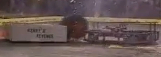 Kenny's Revenge vs. Abbatoir Kenny's Revenge fighting Abbatoir. Kenny's Revenge pushes Abbatoir onto the killsaws. Kenny's Revenge's first match was against Abbatoir. Both robots moved towards each other and Abbatoir hit Kenny's Revenge, stopping Kenny's Revenge's saws. Kenny's Revenge backed off to let its saws get going again and attacked several more times. Abbatoir tried several times to get into a position where it could push Kenny's Revenge, but instead got pushed over the killsaws. Both robots remained mobile, and Kenny's Revenge got several more good hits in on the nearly immobile Abbatoir. The time ran out and Kenny's Revenge won on a 44-1 judges' decision. |