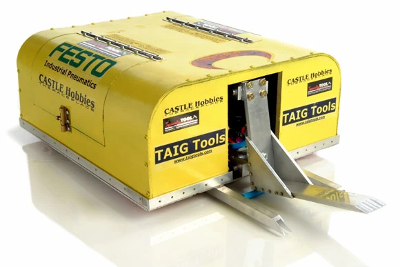 Little Hater vs. Dude of Destruction Little Hater first went up against Dude of Destruction. The bots circled each other for position, and Little Hater got a few hits, one of which shoved Dude of Destruction into the wall. The Dude managed to get a few pushes of its own, though, and in fact pinned Little Hater to the wall as the match ended (its saws were ineffective). However, its wheels seemed to lock up at times. It was a close fight and the judges went for Little Hater in a 23-22 decision. |