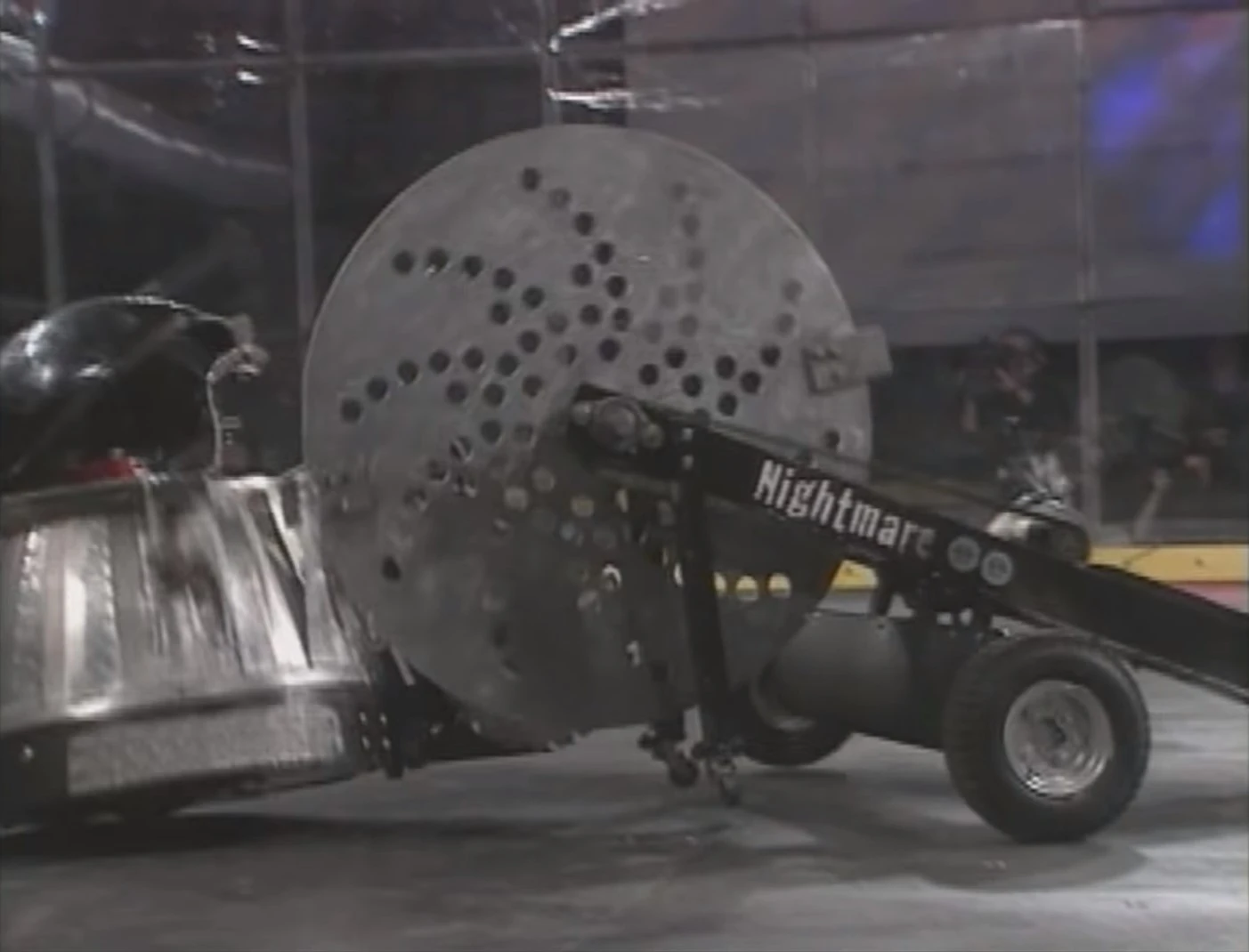 Nightmare participated in the Heavyweight Rumble at the end of the tournament, and it performed well in the beginning by ripping off one of Suicidal Tendencies' tracks. However, about 30 seconds later, Nightmare was overturned by Vlad the Impaler. Nightmare was still moving on its back by using its right drive wheel and was one of few robots that were still moving at the end, but it lost overall to BioHazard.