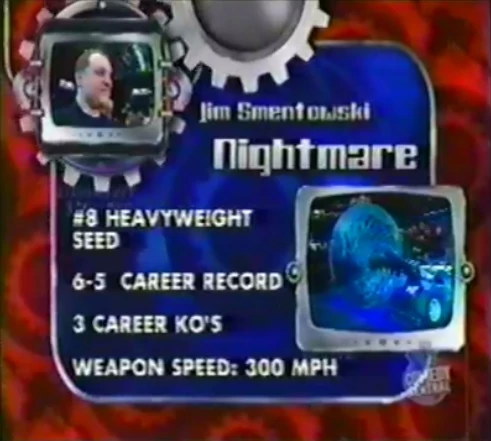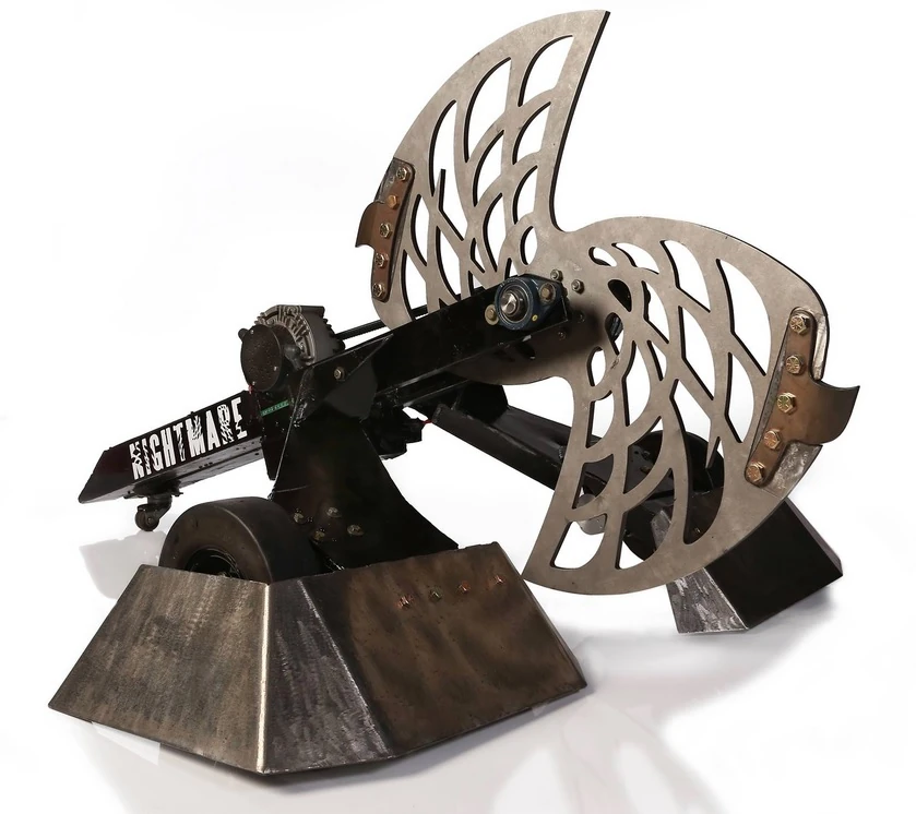 Nightmare is a heavyweight combat robot built by Jim Smentowski, whose titular team fought in ten BattleBots competitions in total: including two 1999 events, all five seasons of Comedy CentralBattleBots, two ABC World Championships and an exhibition battle in Discovery World Championship.