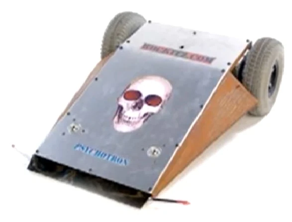 It was a two-wheel drive, wedge-shaped robot which was invertible. Psychotron was armed with three spikes on the back end for weaponry. During Season 4.0, Psychotron was also armed with a small lifting arm, but it did not work well and was rarely used, causing it to be removed after Season 4.0. Psychotron was armored in metal salvaged from ATM machines, and it was a very durable machine, never being knocked out. Psychotron reached the Round of 16 in Season 4.0, but lost its first match in its other two seasons of competition.