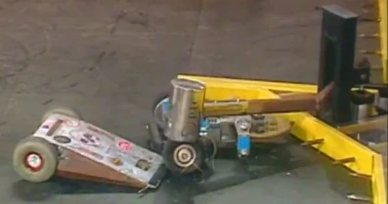 Psychotron vs. Complete Control Psychotron gets clamped by Complete Control. Complete Control grabbed Psychotron within the first ten seconds and lifted Psychotron. Psychotron kind of slid off, but not before being inverted by Complete Control. Psychotron drove directly into Complete Control's clamp and was flipped again by Complete Control. Psychotron got under Complete Control's side and pushed it onto the killsaws. Psychotron ran away and Complete Control tried to clamp Psychotron again, but Psychotron slid out. Complete Control flipped Psychotron again and Complete Control drove into the killsaws, which sheared off a part of the side armor. Complete Control had its lower forks a little off the ground, which gave Psychotron the opportunity to push it around. Soon after, Complete Control grabbed hold of Psychotron again and took it to the pulverizer. Complete Control let go of Psychotron and took a hit from the pulverizer. Psychotron pushed Complete Control and later got caught on Complete Control's clamp again. Complete Control took Psychotron to the killsaws and one of Psychotron's tires received some damage from the killsaws. Psychotron escaped and got underneath Complete Control before the time ran out. Complete Control won the fight on a 37-8 judges' decision and Psychotron was eliminated from the tournament again. |