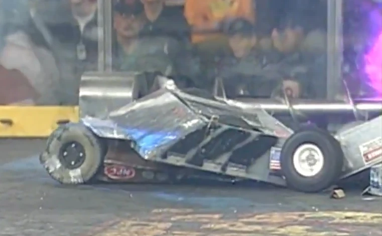 Psychotron vs. Wrath Jr. Psychotron gets underneath the front of Wrath Jr. and controls it. Wrath Jr. gets underneath the front of Psychotron. Wrath Jr. takes Psychotron to the pulverizer. |