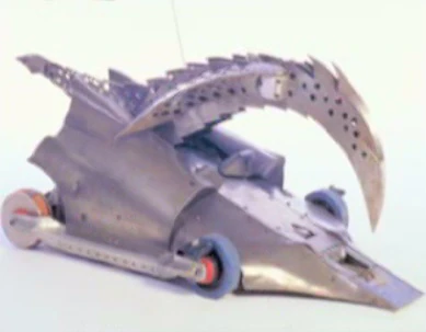 Best known for competing in the UK robot combat show Robot Wars, Razer was a four-wheel drive machine with a wedge-shaped profile and a powerful hydraulic crushing claw, often described as a 'beak', which was capable of exerting three tonnes of pressure at the tip.