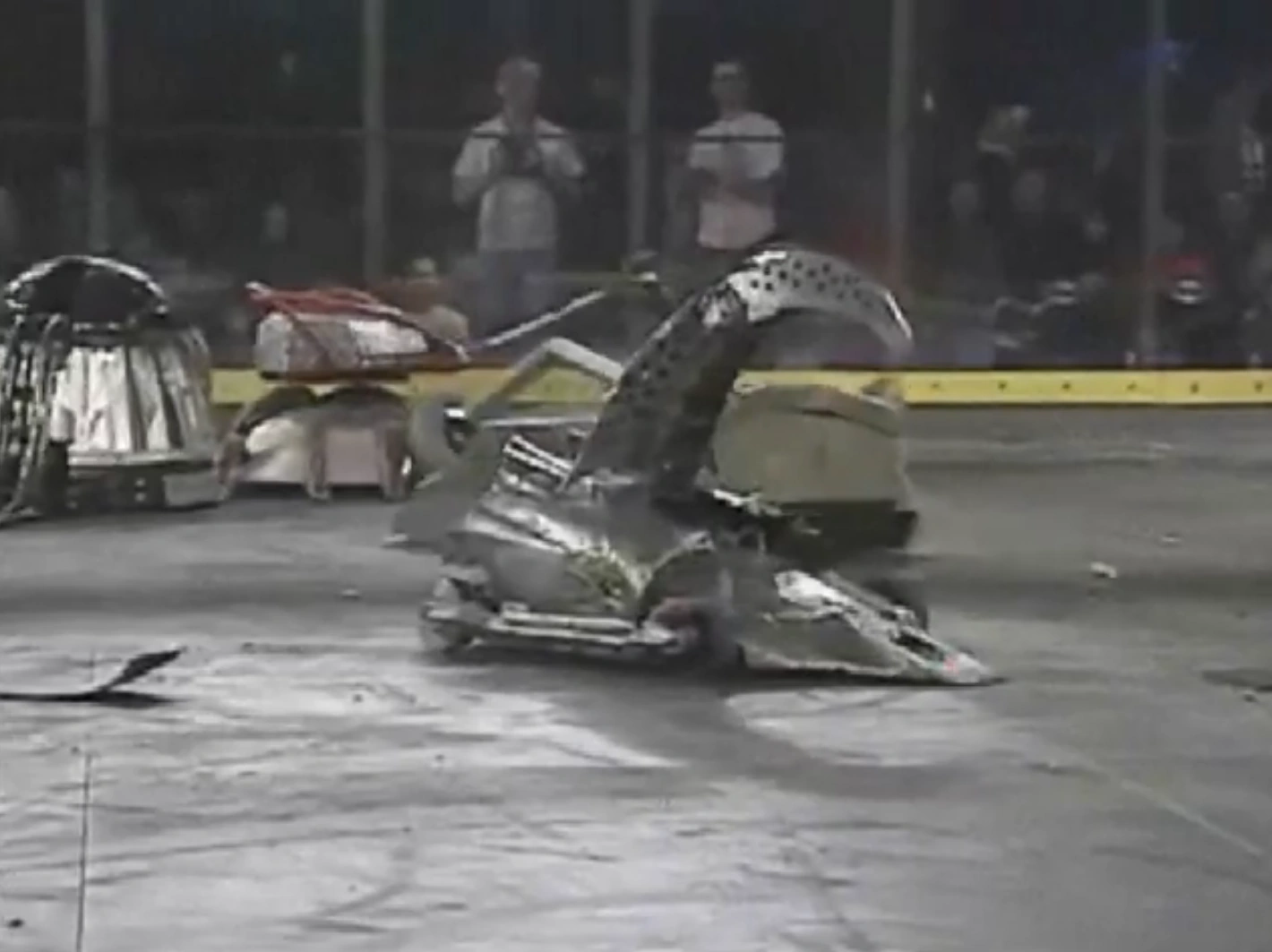 Razer's attempts to self right are prevented by Tazbot's arm.