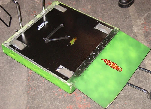 It was a rectangular robot armed with a hinged wedge but no active weaponry. It didn't perform well in competition, losing its first battle.