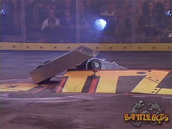 Both robots went straight at each other and both robots started pushing. Mecha Tentoumushi suddenly stops moving and after a few pops from the hellraisers, Mecha Tentoumushi started moving again. Both robots were pushing each other again and Mecha Tentoumushi tries to push Shish-ka-bot onto the killsaws, but it couldn't and decides to take Shish-ka-bot on the hellraisers. Mecha Tentoumushi pushes Shish-ka-bot onto the killsaws and Shish-ka-bot stops moving as its drive motors had fried. After Mecha Tentoumushi does a victory spin, it came back to push Shish-ka-bot again and takes it to the killsaws again, sending it flying halfway across the BattleBox. Shish-ka-bot was being counted out, but the time ran out first and Mecha Tentoumushi won the fight on a 40-5 judges' decision. This meant that Shish-ka-bot was eliminated from the tournament.