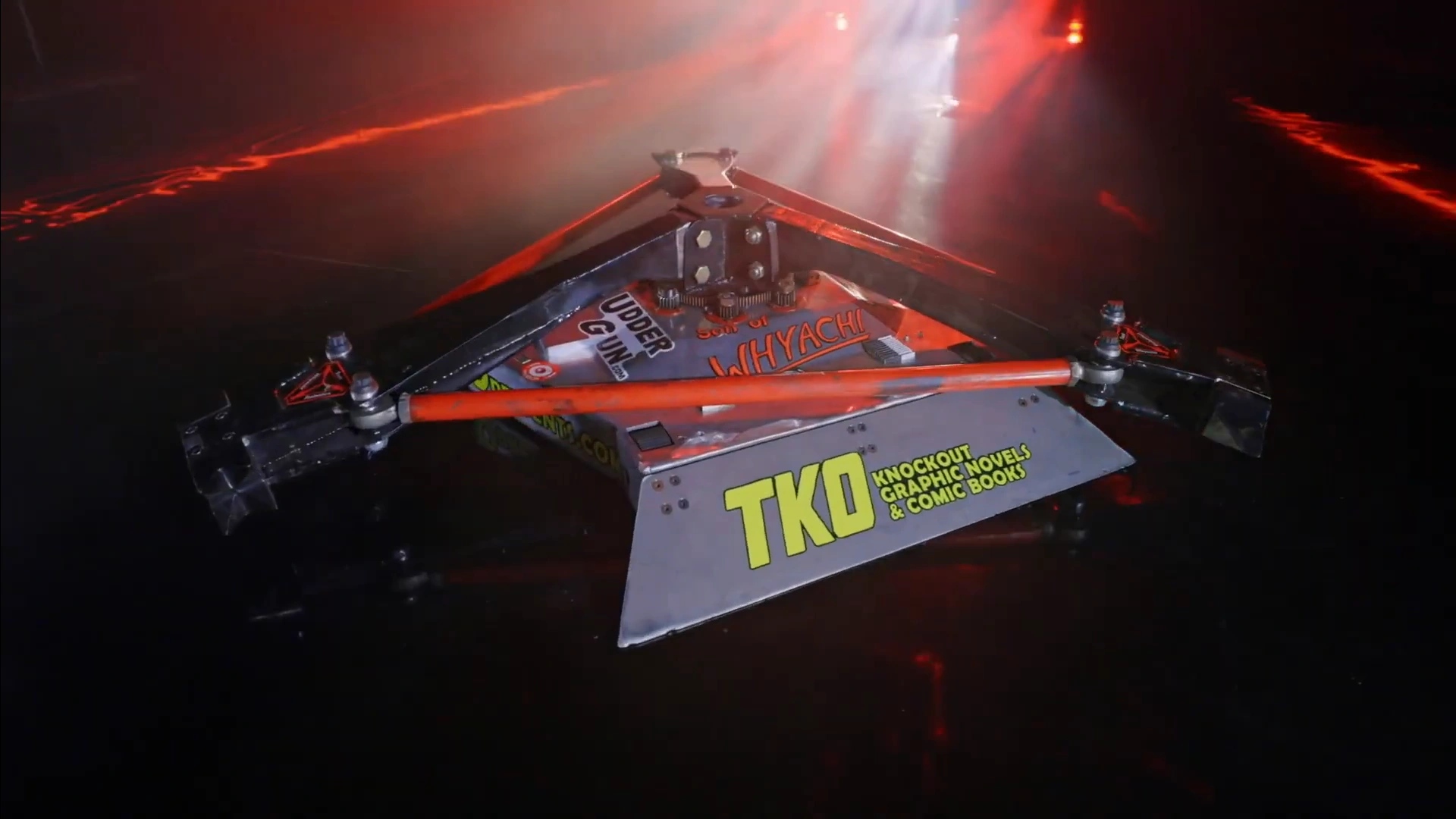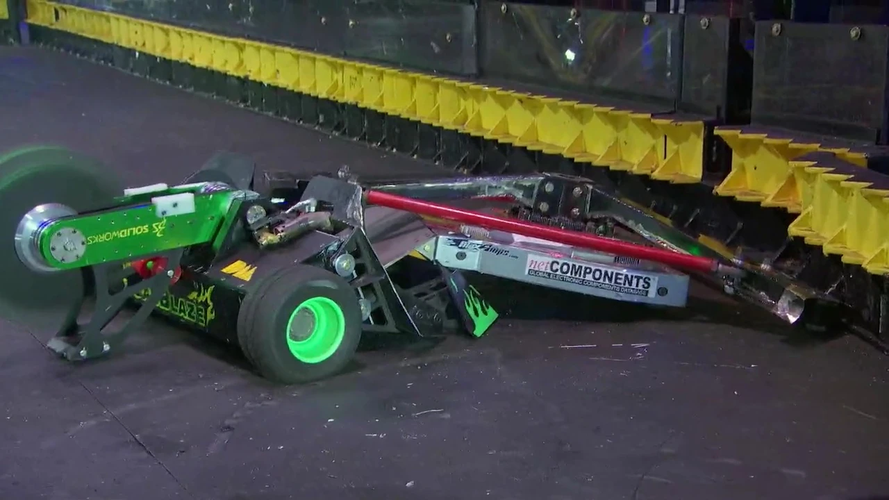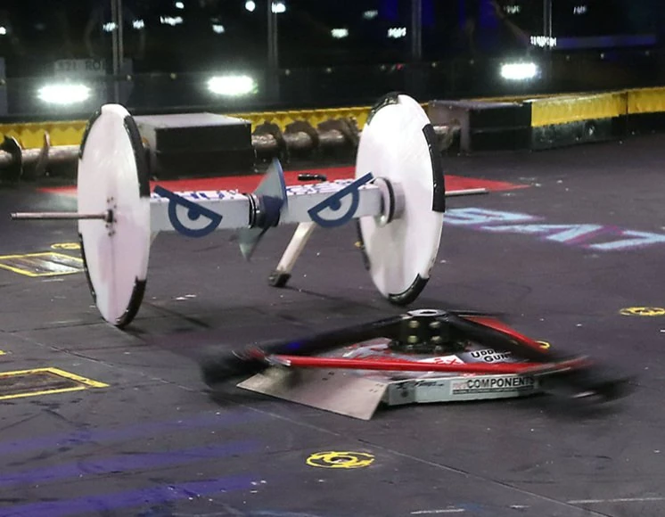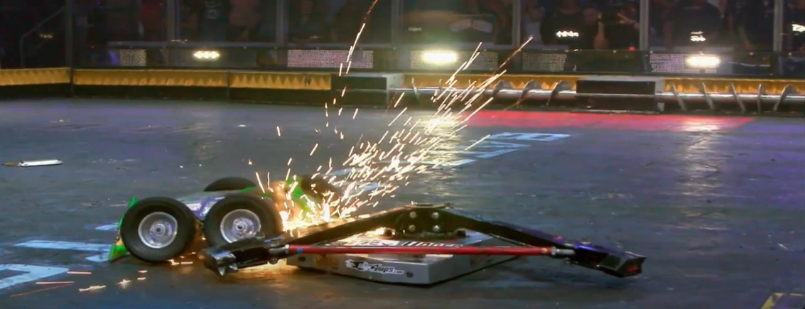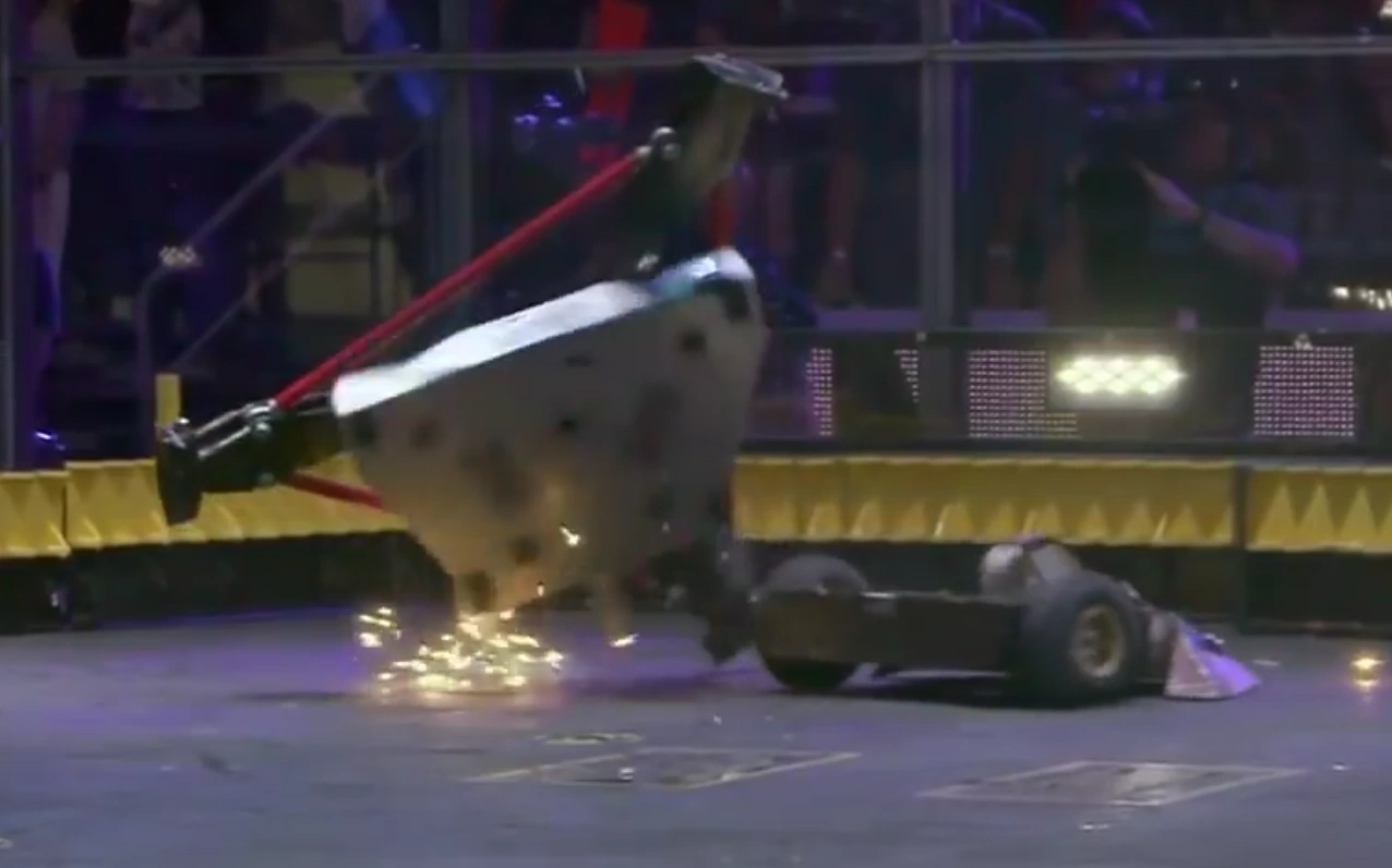 Despite Son of Whyachi's main weakness being a lack of a self-righting mechanism, it's only ever been flipped onto its back four times in a BattleBots career spanning twenty years. The four robots to do so were Bounty Hunter, Brutus, Whiplash and Gigabyte.