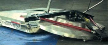 Son of Whyachi was once again redesigned for the 2004 NPC Charity Open, by this time switching to a tracked design with the triangular spinner now powered by two 15hp Yamaha kart engines.[9] Renamed Nitro SOW, it only picked up one combat victory before being eliminated from the superheavyweight division. For several years after, the virtually-complete Nitro SOW still continued to make public appearances at the annual Mecha Mayhem tournament as a static display. The 2012 edition of the event saw it being displayed alongside fellow Team Whyachi machine Falcon.