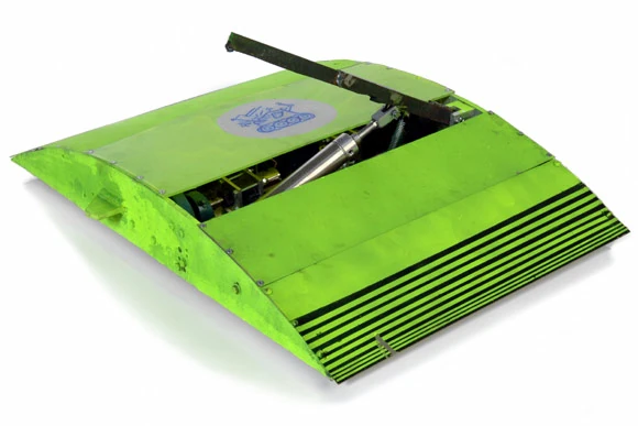 Speed Bump vs. J.R.C.V. Speed Bump's next opponent was J.R.C.V.. as the fight began, J.R.C.V. began pushing Speed Bump around and the two engaged in a pushing match. and Speed Bump clamped J.R.C.V. and rammed it into the wall. J.R.C.V. appeared hurt from this attack as it was no longer mobile. A count began and Speed Bump continued on. |