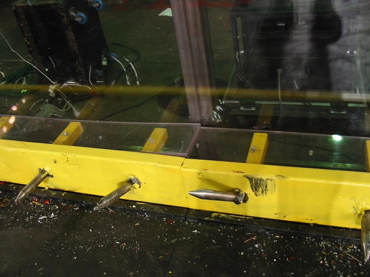 The spikes themselves, which extended several inches from each wall, were often utilized by robots with superior pushing power to impale opponents and puncture tires. At the 1999 Las Vegas event, Peter Lambertson explained that each individual spike had carbide tips to retain their sharpness.[1]