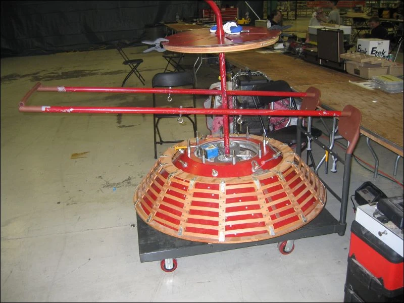 It was a red shell spinner design with teeth made out of S7 steel.[1] To help the team know which way it was facing ,a directional indicator protruded from its front. Steel Piranha preformed poorly in competition, losing both of its matches against Super Megabyte and Black Knight 3.0.