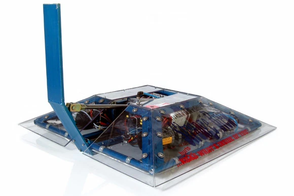It was a sloped square-shaped robot armed with a pneumatic front-hinged flipping arm. It performed decently in competition, winning three fights in two seasons of competition.