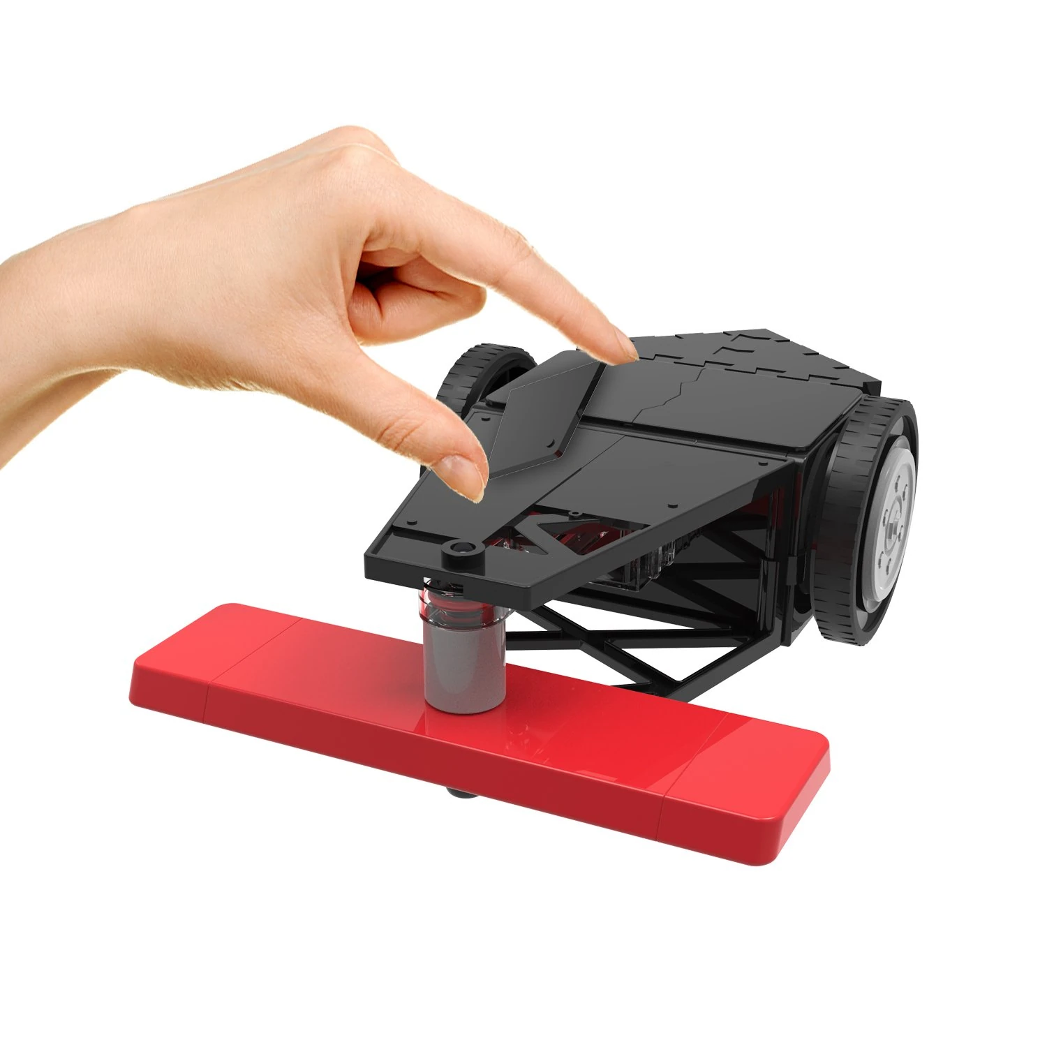 The toy is easily recognizable as Hardcore Robotics' title-winning robot, with its iconic red bar spinner included in the kit to spin like the real robot. Like other toys in the line, it needs to be constructed and includes instructions to do just that. Many of the parts either clip or press together, with each part made from slightly flexible plastic. These can come off during play to represent damage, and a "kill switch" is hidden behind the removable rear-left piece. When hit, this not only stops the robot from being able to drive, but also throws its top armor away leaving a red light to signal its immobilization.