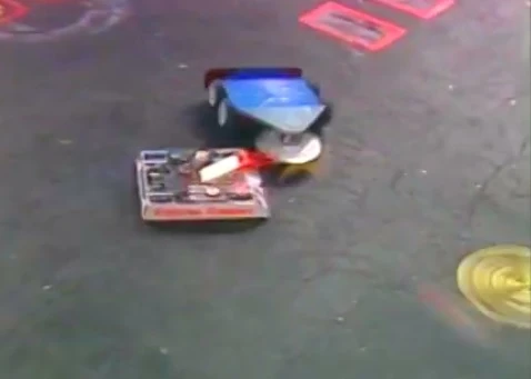 Unfortunately, due to how the radio controls were configured, Twin Paradox was forced to run with its plow facing forward and its disk high up for its fights. Twin Paradox's first match was against Bot-a-Bing. Twin Paradox won by KO and advanced to the next round, where it faced Fast Forward.