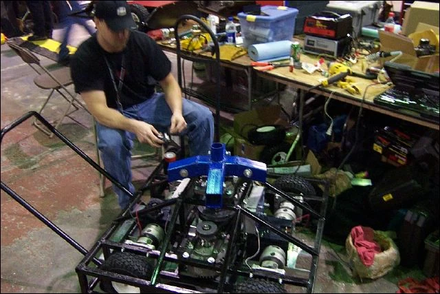 It was a four-wheel drive robot armed with four overhead spinning hammers. The team's name was fitted to an aluminum checker plate sheet towards the front of Vertigo.