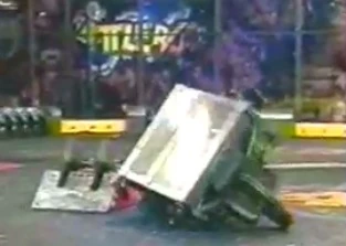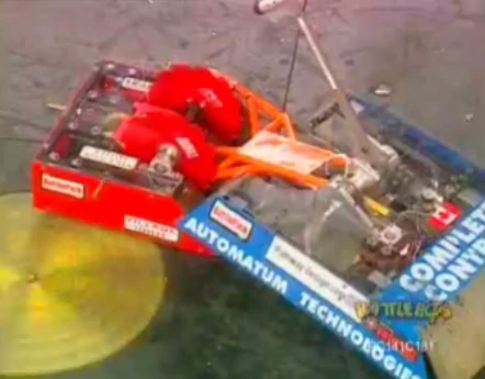 Middleweight Royal Rumble Village Idiot also participated the Middleweight Royal Rumble at the end of the tournament. It tackled Bad Attitude, then Deadblow. It also went after Twin Paradox. It then started chasing Complete Control, then Bad Attitude. Village Idiot then got stuck in the spikes momentarily, but it eventually broke free. It then tried to attack T-Minus, then gets grabbed by Complete Control. SABotage got its flipping arm underneath the right side of Complete Control and flipped it onto its side along with Village Idiot. They both remained in this position for a while until SABotage rights them. Complete Control continued to hold Village Idiot hostage, using Village Idiot as a shield against other robots, then pummeling Village Idiot into the wall before letting go. In the end T-Minus was declared the winner. |
