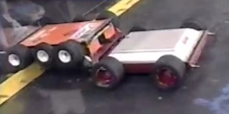 Considered the pioneer of the wedge, Greg Munson and Trey Roski competed in the earliest US Robot Wars competitions in San Francisco with La Machine, winning the 1995 event outright. Combining its large ramp-like wedge with impressive speed and drive power, La Machine was able to use brute force to dominate its opponents.